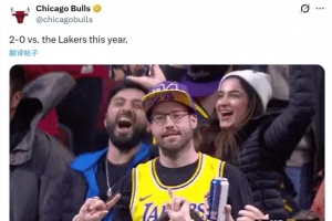 值得一提的是,上赛季公牛常规赛对湖人2胜0负。公牛官方曾发推嘲讽:“公牛本赛季对湖人2胜0负。”配图是湖人被公牛绝杀后湖人球迷不敢相信的表情包。