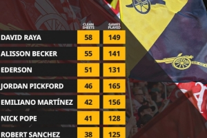 电讯报:拉亚本赛季4次神扑让阿森纳多拿8分,本轮补时极限救险