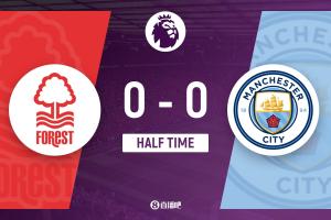 北京时间20:30,英超第18轮诺丁汉森林vs曼城,比赛在诺丁汉城市足球场打响!上半场,曼城控球率近7成,但双方均0射正;迪亚斯吃到黄牌。半场结束,曼城暂0-0诺丁汉森林。